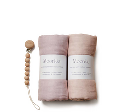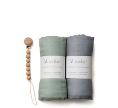 - Moonkie Muslin Swaddle Blanket - 2 Pack (+ Pacifier Clip)