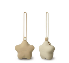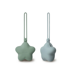 I gjithë mbajtësi është bërë nga 100% silikon platini i gradës ushqimore, pa BPA, BPS, PVC, PFAS, ftalate, plumb dhe lateks. Kështu që i vogli juaj është i sigurt nga kimikatet e dëmshme, edhe nëse ai ose ajo fillon ta përtypë mbajtësen. Në Moonkie, siguria e foshnjës suaj është përparësia jonë kryesore!