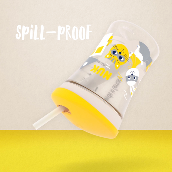 Gota NUK Action Cup *230ml shoqëron fëmijën nga mosha 12 muajshe, kur bëhet më aktiv dhe lëvizja dhe ekplorimet janë në plan të parë. Falë kapakut praktik që vidhoset, gjatë transportit, pipa prej silikoni zhduket me një lëvizje të kapakut për të mos lejuar derdhjen e lëngjeve.