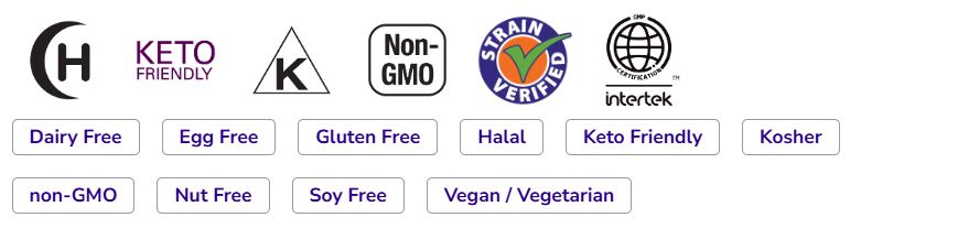Përzierja e baktereve probiotike: Lactobacillus acidophilus (La-14), Bifidobacterium lactis (Bl-04), Bifidobacterium longum (Bl-05), Streptococcus thermophilus (St-21), Lactobacillus bulgaricus (Lb-87), Lactobacillus paracasei (Lpc-37) | 4 Bilion CFU | * |