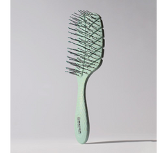 -Dizajni ergonomik: formë gjysmë e lakuar që së bashku me gjatësinë e fijeve është përshtatur për të krehur një sasi më të madhe flokësh në çdo lëvizje.