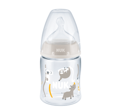 • Risi nga NUK - Shishja me Kontrollues Temperature ndihmon prindërit të sigurohen për temperaturën optimale gjatë ushqyerjes së foshnjës së tyre.\n• Kontrolluesi i temperaturës ndryshon ngjyrën në bazë të temperaturës së qumështit: nëse qumështi është shumë i nxehtë, treguesi do të kthehet në ngjyrë të bardhë dhe nëse është shumë i ftohtë merr ngjyrë blu\n• Kokë e butë silikoni, tolerante me nofullën\n300ml: 0-6 muaj S (vrima të vogla = për qumështin e gjirit, çajin, ujin)\n• Material i përbërë nga poliamide me cilësi të lartë (PA), pa BPA\n*Testuar klinikisht për një kombinim optimal të të ushqyerit me gji dhe shishe.