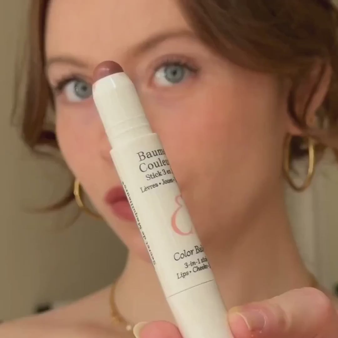 Zbuloni Baume Couleur Stick 3 në 1 për një pamje natyrale dhe rrezatuese. Ky multifunksional stick ofron ngjyrë të pasur dhe kujdes për buzët, faqet dhe sytë tuaj. E formuluar me 94% përbërës me origjinë natyrale, duke përfshirë Centella Asiatica dhe Aloe Vera, ky produkt është i butë me lëkurën tuaj. Tekstura e tij e lehtë dhe kremoze siguron aplikim të lehtë dhe një përfundim të natyrshëm. Vegan dhe pa parfum, është zgjedhja ideale për ata që kërkojnë kujdes dhe makiazh në një produkt të vetëm. Përdoreni për një prekje ngjyre në buzë, për të formuar faqet tuaja ose për të theksuar sytë tuaj. Perfekt për përdorim të përditshëm dhe për të arritur një pamje të shëndetshme dhe të gjallë.